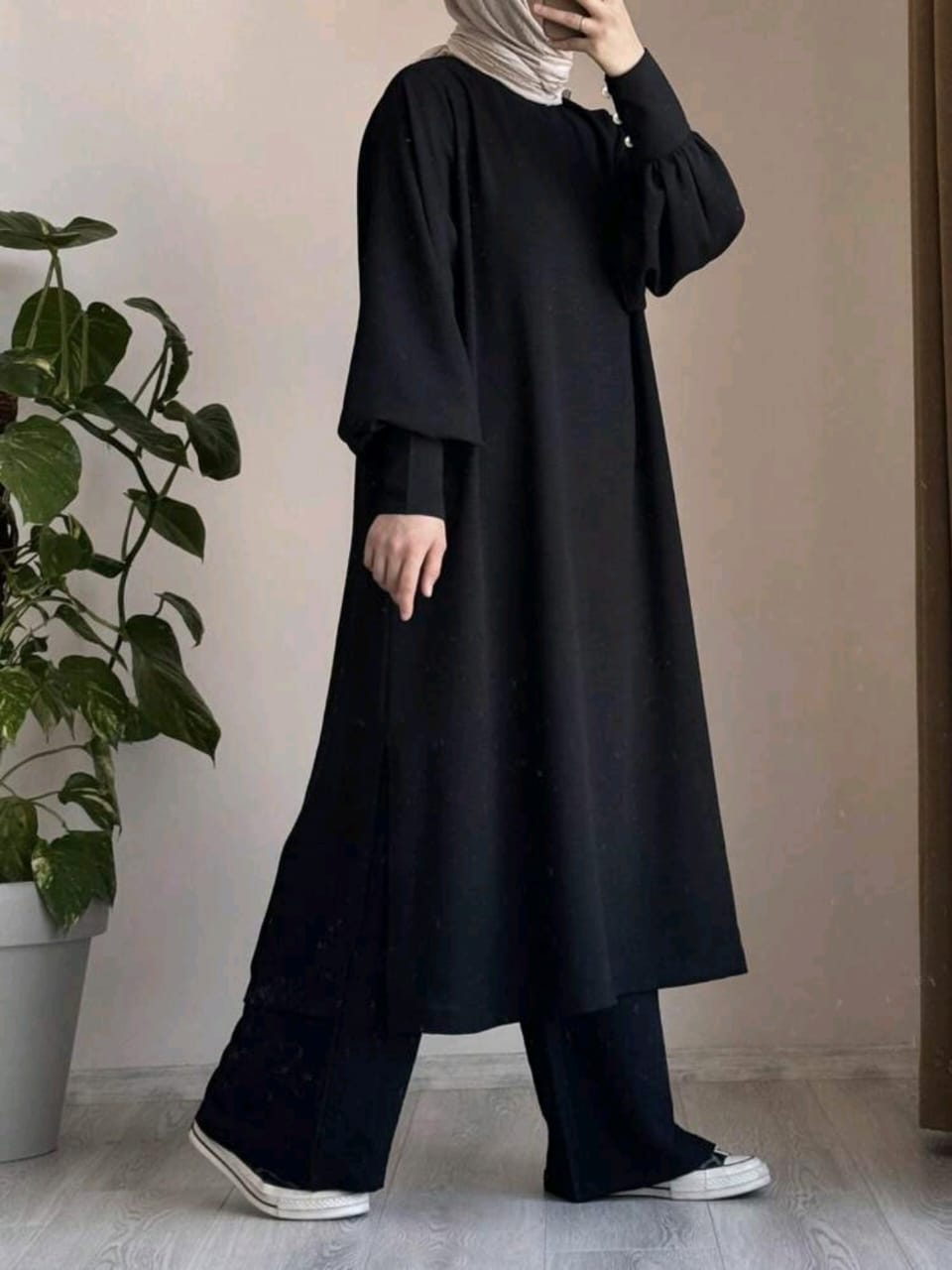 Absolutely amazing quality! I bought this black set as a gift and the fabric is incredibly soft and premium. The balloon sleeves look very stylish and the fit is perfect. It arrived in just 4 days here in the UAE. Highly recommended for anyone looking for elegant modest wear!
