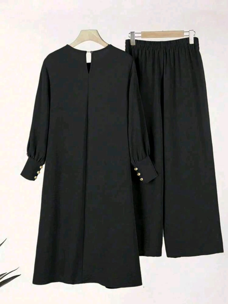 • Two-Piece Set: Includes a flowy, long-length tunic and matching wide-leg trousers for a perfectly coordinated modest outfit.